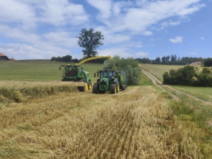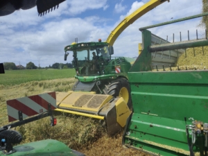 Mit dem John Deere 8400I ernten wir Grassilage kurz und exakt gehäckselt für ihre Tiere.