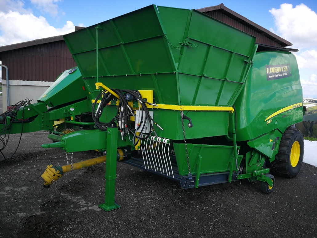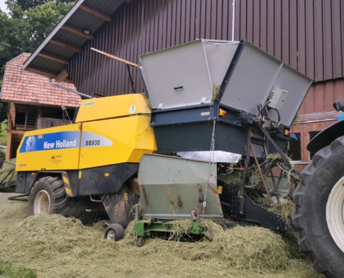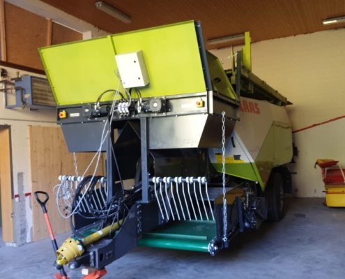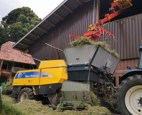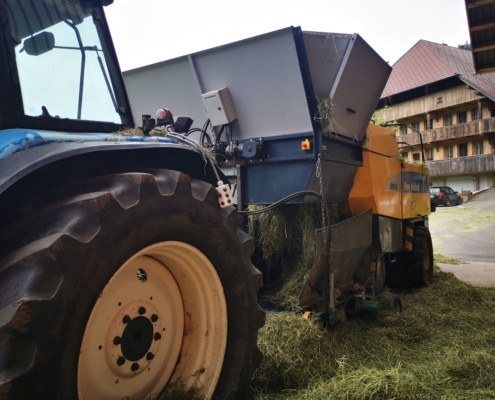 Auch bei langem schwierigem Heu arbeitet die Dosieranlage Störungsfrei. Die Rotoren drehen abwechselnd und Schonend zum Futter. Das Dosiergerät M20 ist auf Höchstleistung ausgelegt und kann daher auf jede Quaderballenpresse verbaut werden.