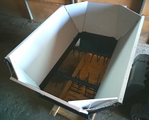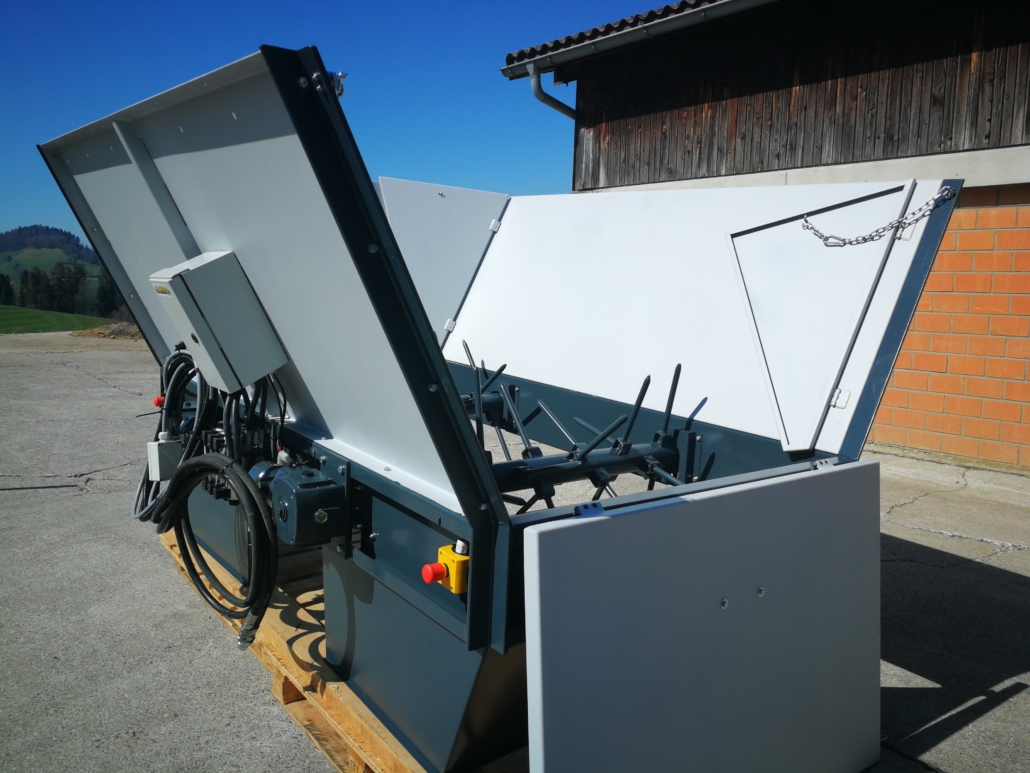 Aufbau kann zum Transport eingeklappt werden. Dank dem C-Rahmen können alle Bauteile verschraubt werden. Die Rotoren werden mit Wartungsarmen Getriebe angetrieben.