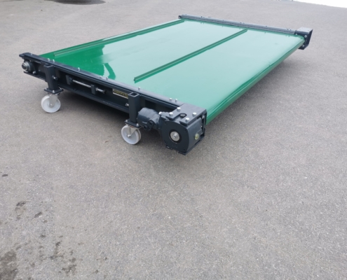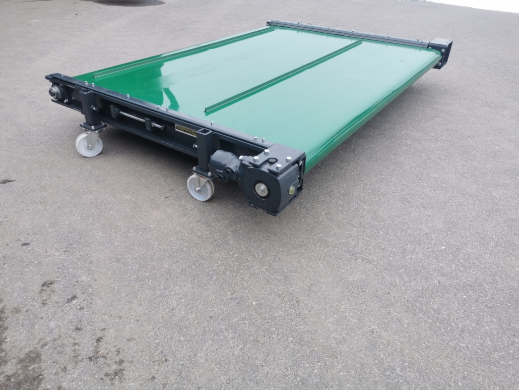 Das mit einem PVC Fördergurt ausgestattete Band ist schnell einsatzbereit. Es ist ist mit einem 4 Rad Fahrwerk ausgestattet. Der Vorteile mit einem PVC Band liegen auf der Hand: